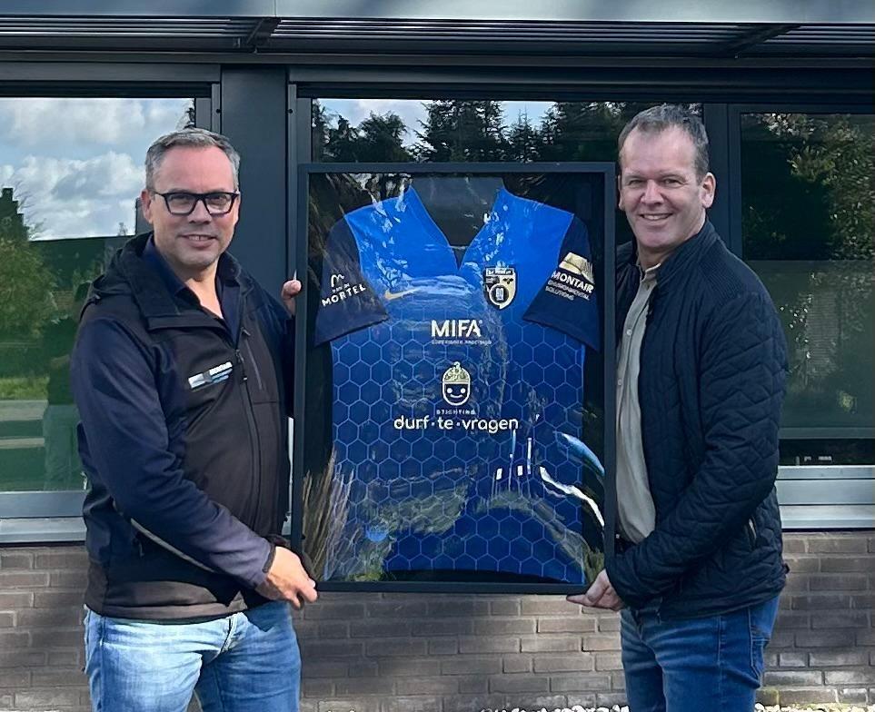 Vandaag hebben we van SV Venray een prachtig ingelijst jubileumshirt ontvangen. Dit t-shirt is speciaal gemaakt voor de benefietwedstrijd voor Stichting Durf te Vragen van Dylan en Marit Haegens. Deze stichting zet zich in om psychische problemen bij jongeren bespreekbaar te maken. We zijn blij dat we als shirtsponsor bij kunnen dragen aan dit belangrijke doel.